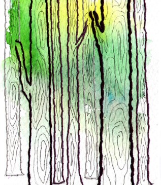 Acuarela, tinta y bordado sobre papel, 15 x 10 cm. Año 2013. Vendida.