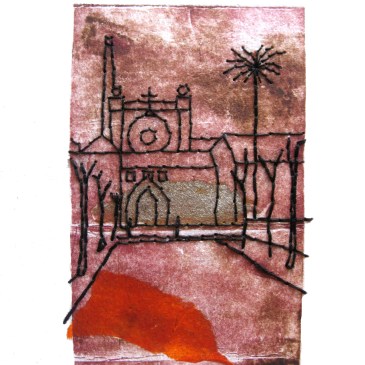 Bordado y grabado sobre papel, 16 x 10 cm.